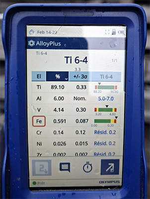 Nous procédons à l’analyse par spectrométrie afin d’identifier et quantifier les éléments chimiques présents dans le matériau. Et ainsi s’assurer de la qualité de l’alliage.